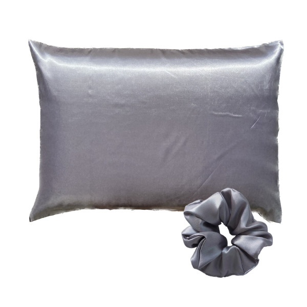 O kit contém: 1 Fronha de cetim + 1 Scrunchie de cetim.
